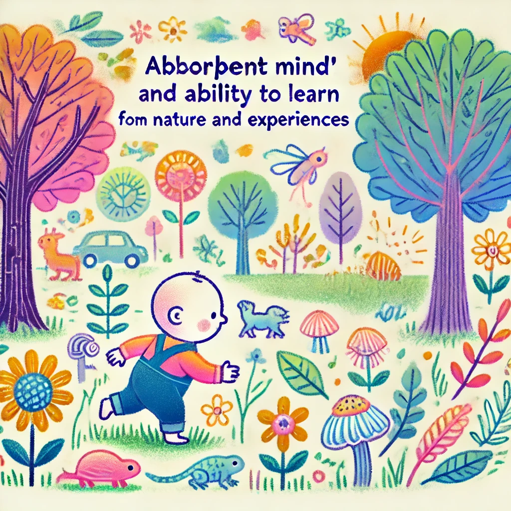 Between birth and around six years old, my absorbent mind is in full action. It’s like magic—it doesn’t just happen later in life. During this time, I’m learning languages, building relationships, and figuring out how the world works. Every smile you give, every word you say—it all becomes a part of me.