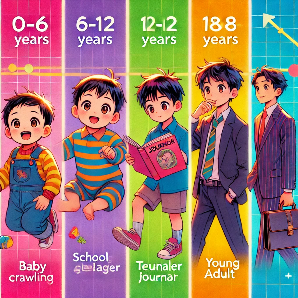 - 12–18 Years: A transformational phase full of change and self-discovery.