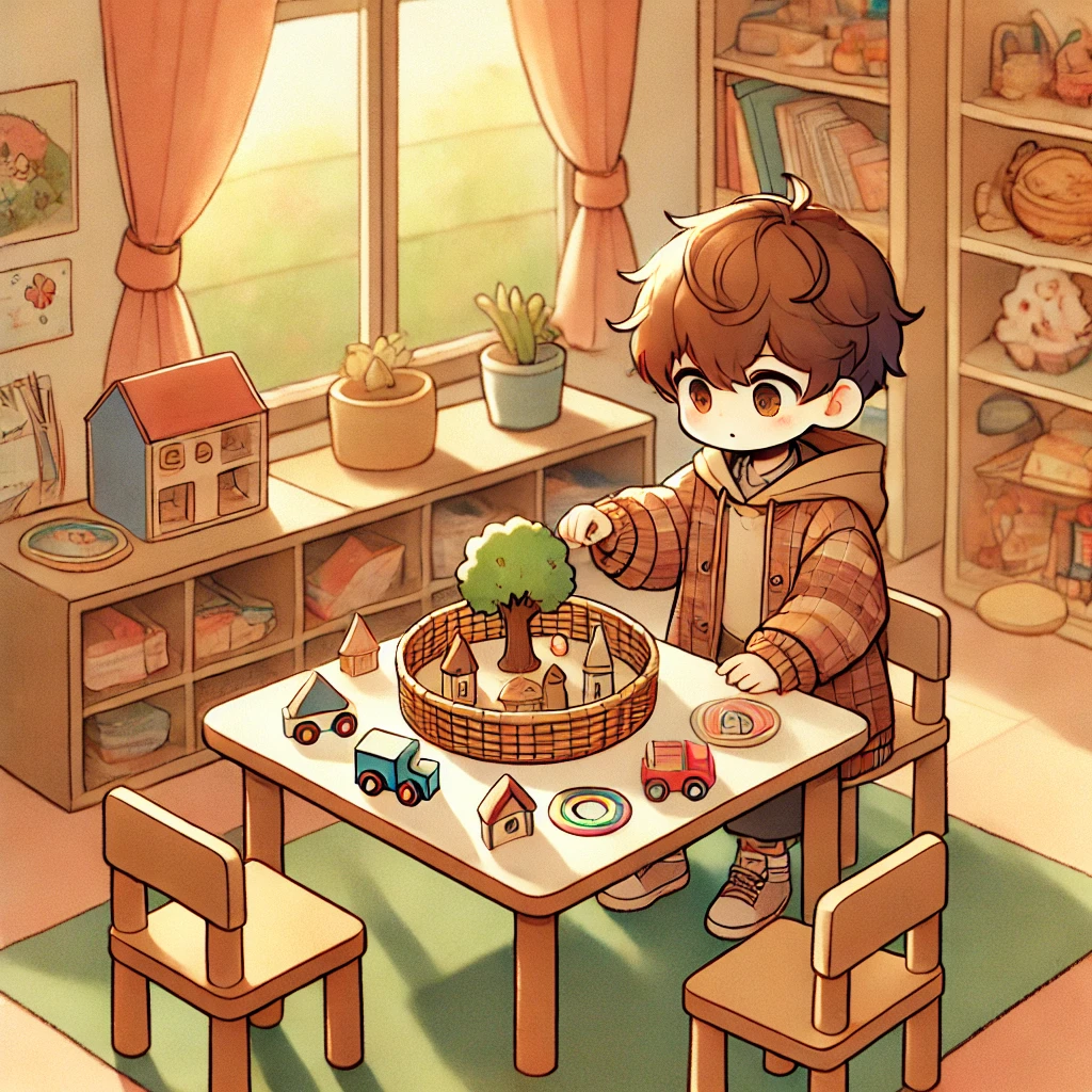 Storytelling Basket (2–4 years): Fill a basket with small objects (like a toy car, a mini tree, and a tiny house). Use them to create a story with me or let me make up my own!