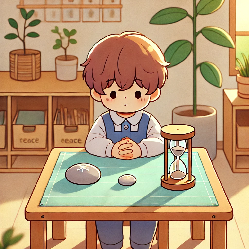 Imagine a calming oasis where I can learn to center myself and reflect. A peace table is filled with soothing objects like a sand timer, a smooth peace stone, or a small plant. It’s my personal space to pause, process my emotions, and build self-regulation. Each moment I spend here teaches me to approach conflicts with empathy and find solutions with a cool, steady heart.